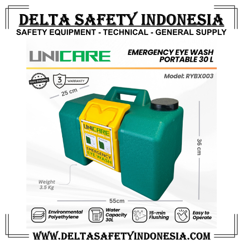 Amankan keselamatan mata karyawan Anda sekarang juga dengan Eyewash Portable Unicare RYBX003.